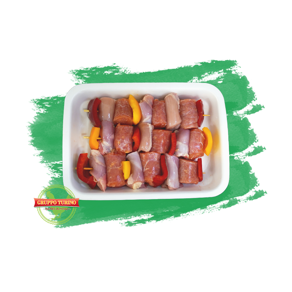 Gli spiedini di tacchino sono gustosi e preparati a mano con carne di tacchino, salsicce e peperoni.