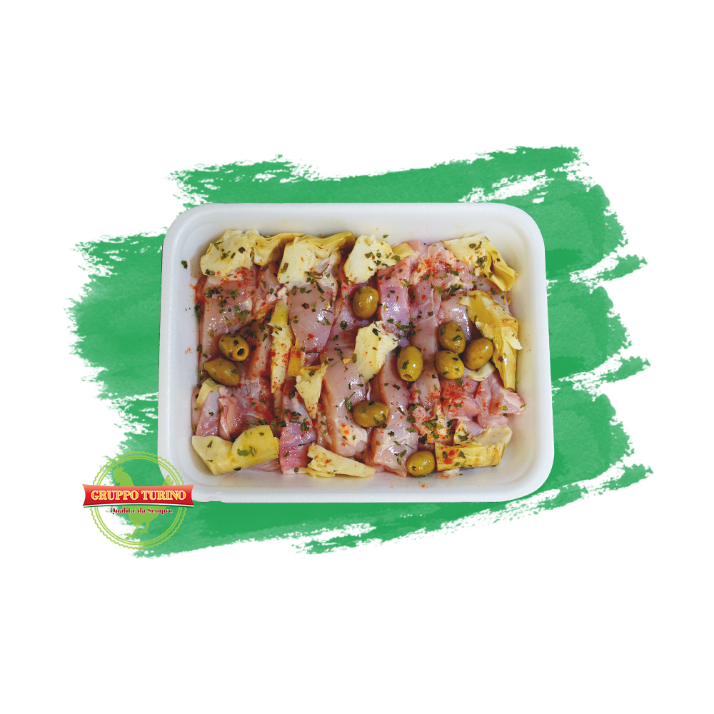 Tagliata di pollo ai carciofi.